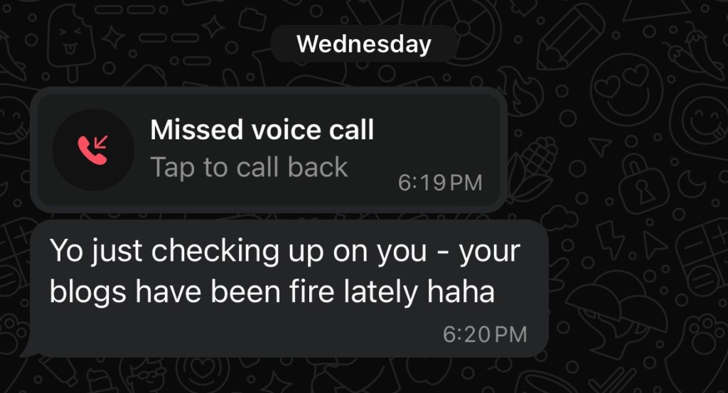 My brain is all over the place. I keep drafting stuff for D.E.A.T.H. Literally whenever I sit down to blog I come up with content that can’t hit the site. It’s too good and I don’t want someone to swipe it. I don’t think someone would jack my shit but there is a fear. In my imagination the thief is a writer working for New York mag. She’s pumped out so many articles for the machine that she lost her soul along the way and doesn’t have any creative juices left. One day she stumbles on my blog and goes “oh wow, here’s something I can work with” and bam, next thing you know my shit is staring back at me from nymag.com. Not fucking happening.